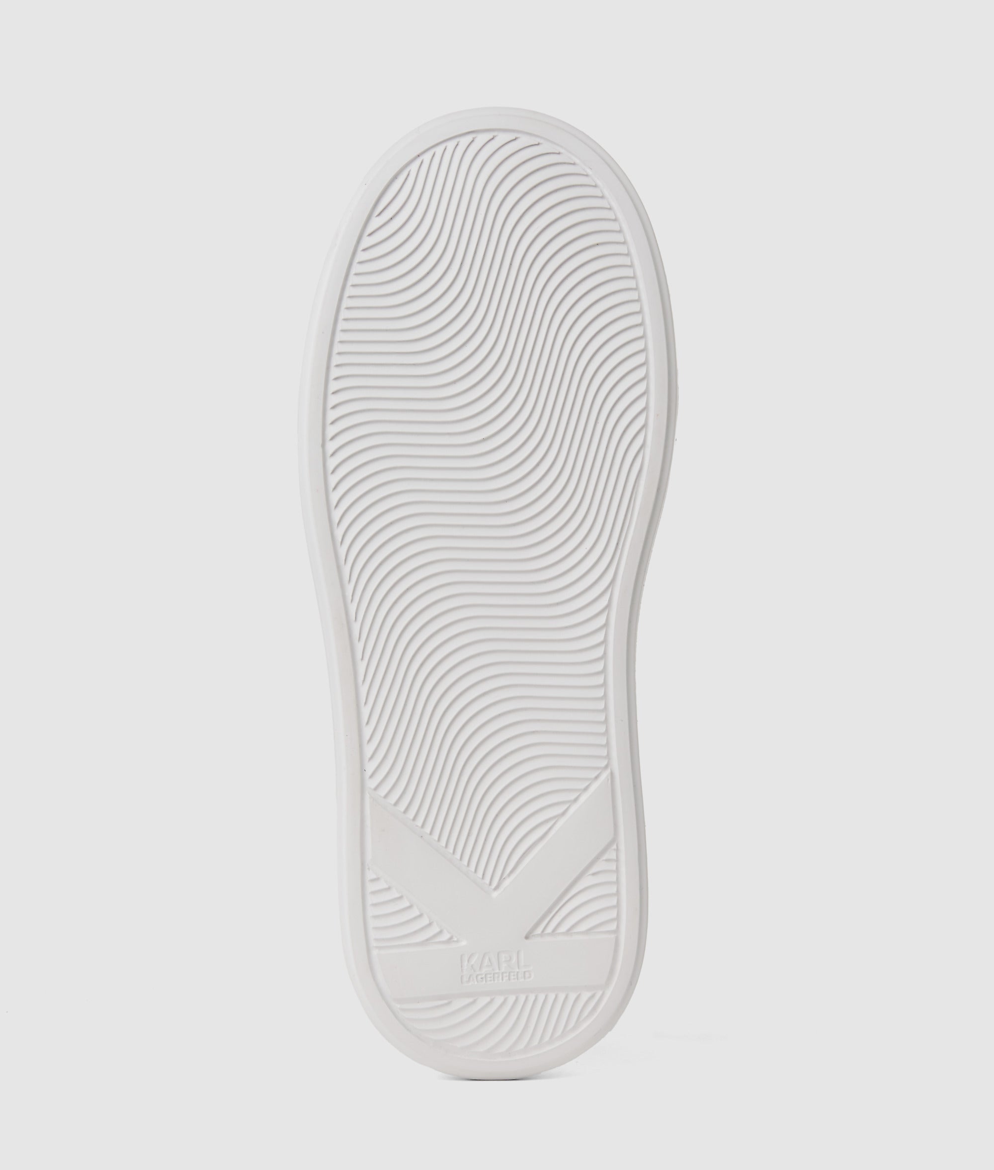 Add a touch of rebellious spirit to your wardrobe with these bold sneakers. featuring an inspirational quote from Karl Lagerfeld. A high wedge sole and patent leather heel counter complete the confident look.