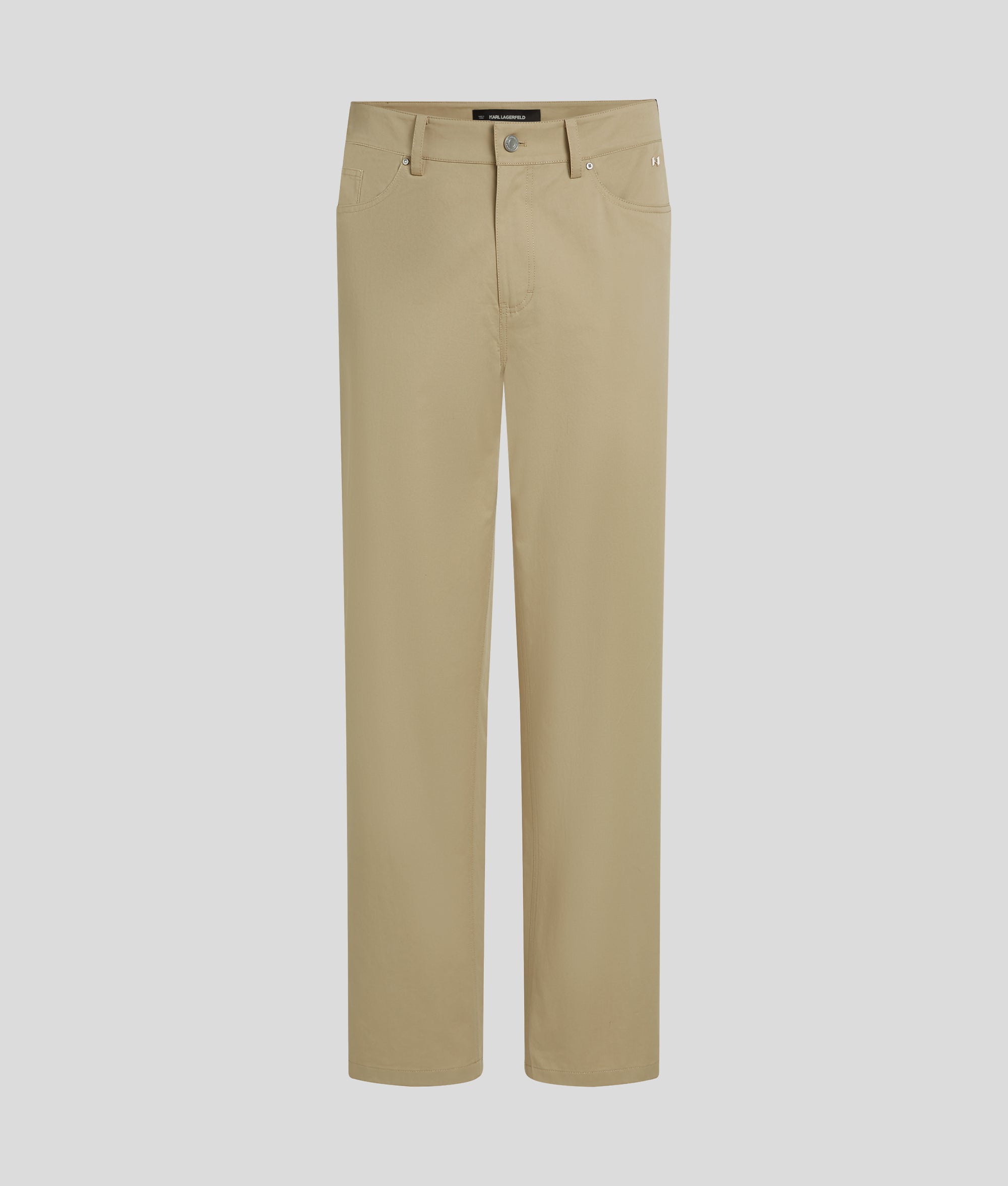 Timeless and versatile. these chino pants feature a classic five-pocket design and a branded shank button at the fly. A KARL LAGERFELD patch at the back waistband adds subtle branding. making them a versatile staple for everyday wear.?