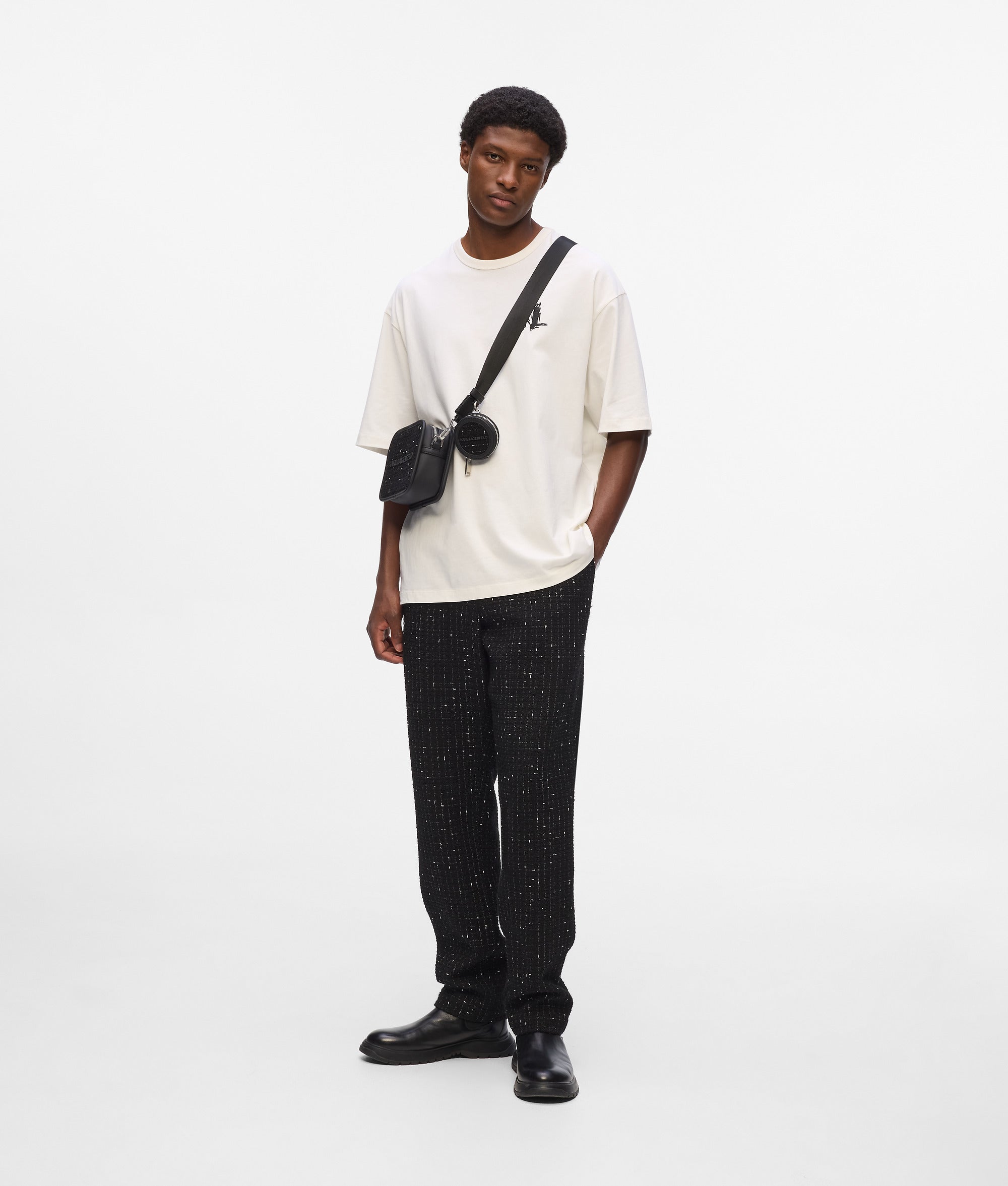 A bold. oversized T-shirt featuring a graphic KL Monogram print at the chest and across the back. Crafted in 100% organic cotton. it combines self-expression and comfort.