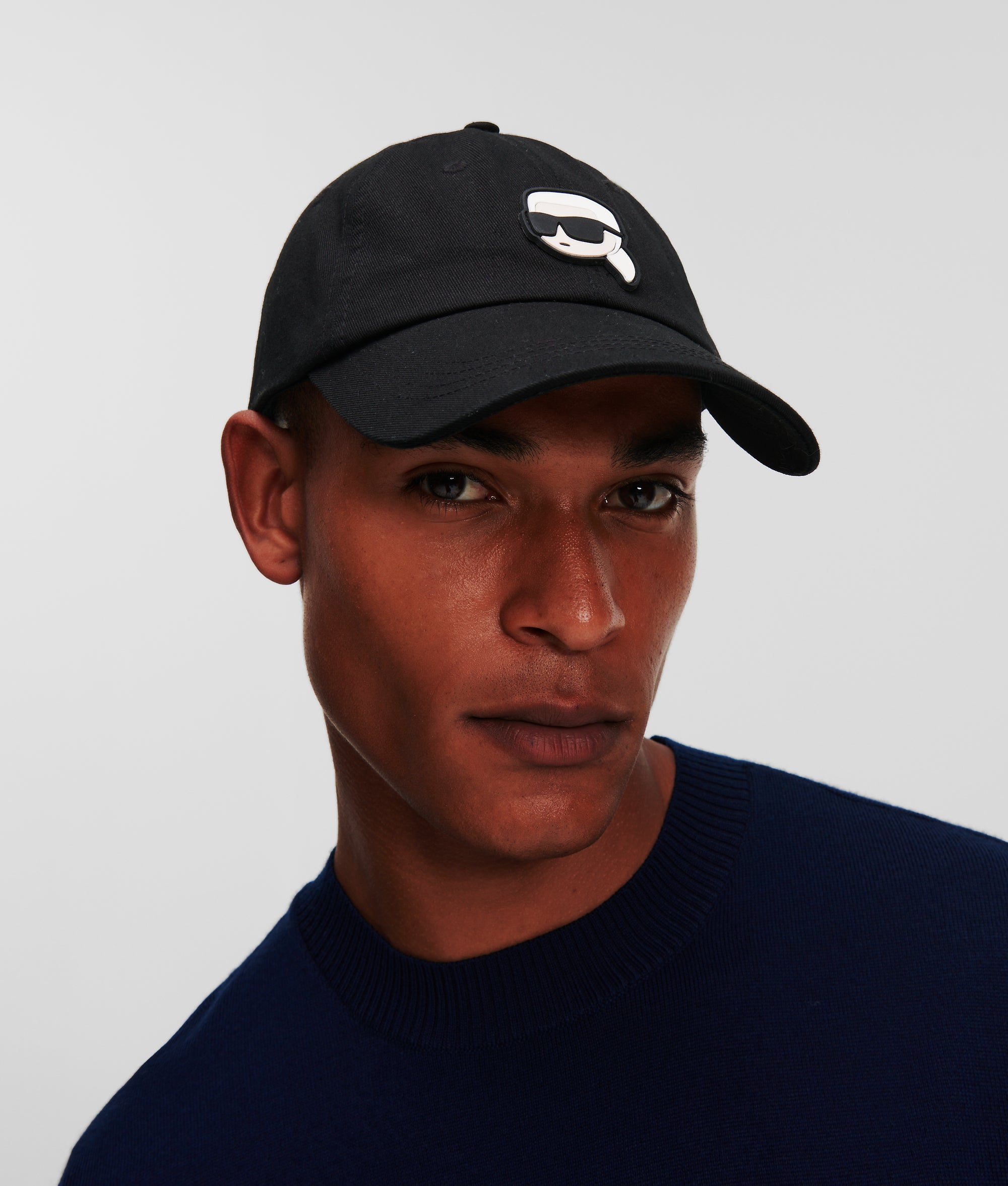 New generation IKON Karl artwork gives a playful twist to this classic baseball cap. Crafted from premium recycled materials. the off-duty staple features a curved peak and branded buckle for an adjustable fit.