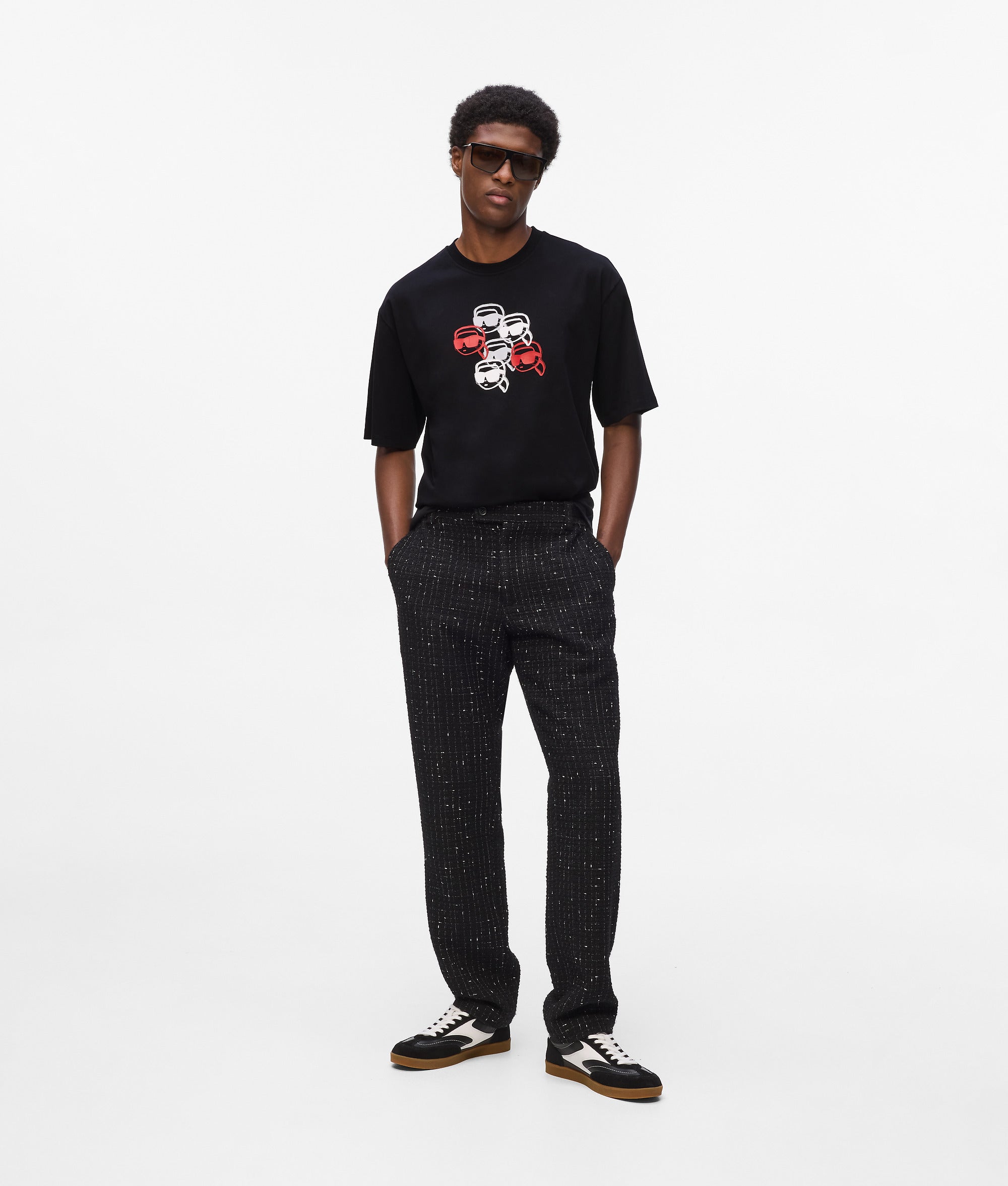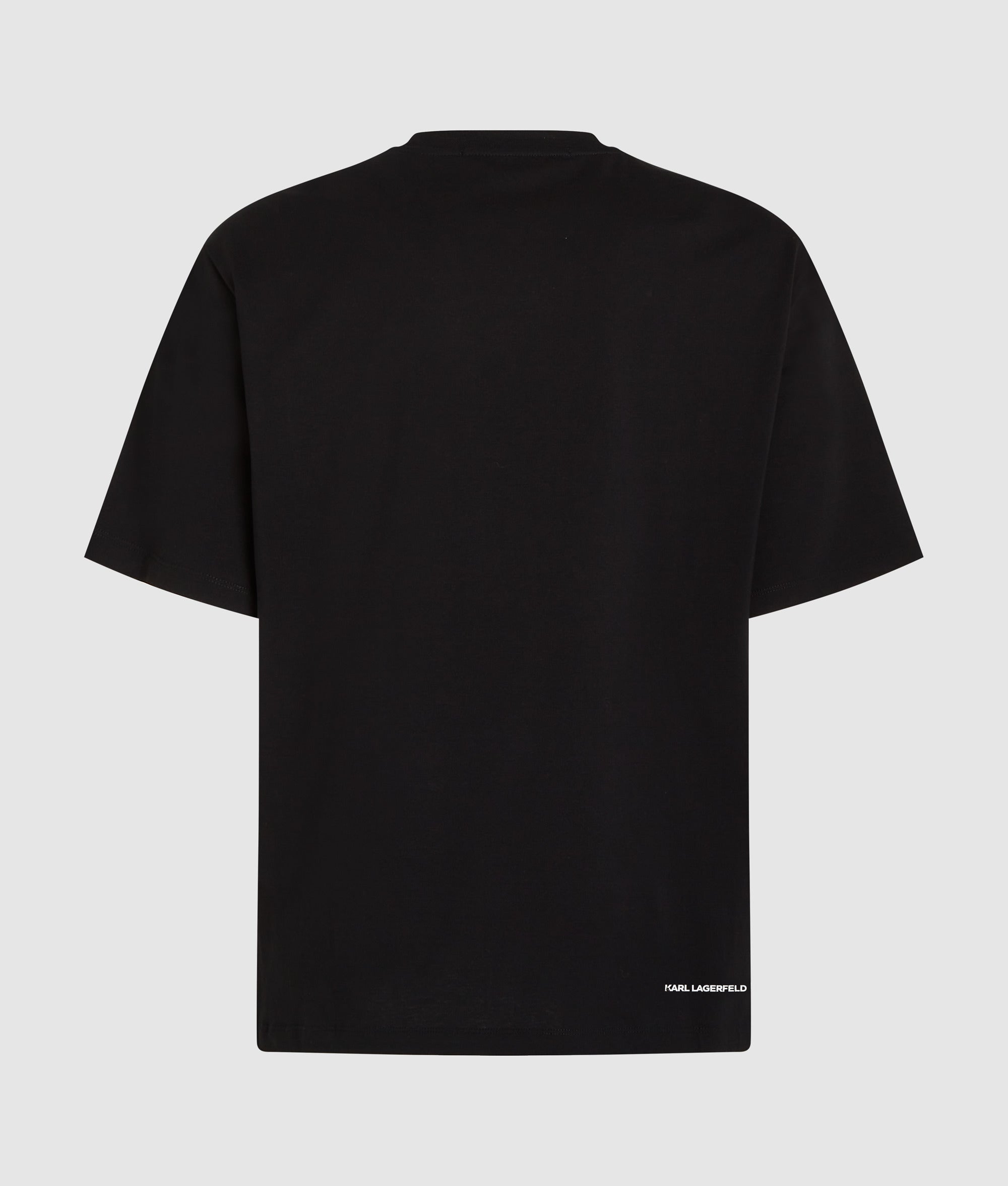 Vibrant Ikon Karl artwork with embroidered details takes center stage of this versatile T-shirt. Featuring a classic crewneck and a ribbed collar. it blends a timeless silhouette with unique style.