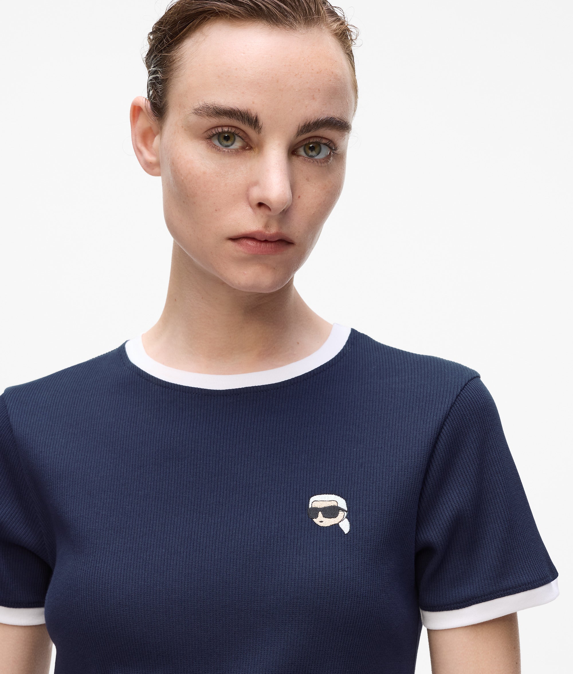 This organic cotton T-shirt features built-in stretch for a figure-skimming fit. Contrast piping and Ikon Karl complete the effortlessly cool look.