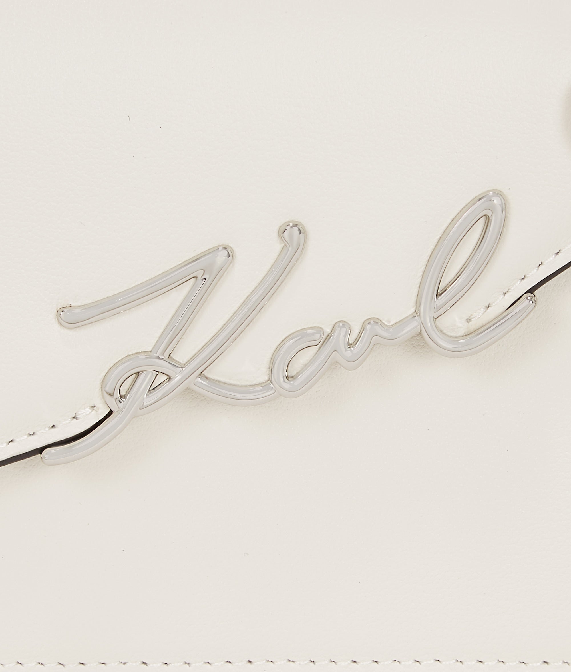 Crafted from textured leather. the K/Signature crossbody bag is defined by a streamlined silhouette. sharp lines and versatile styling options. Complete with delicate KARL Signature hardware. it exudes sophistication in every detail.