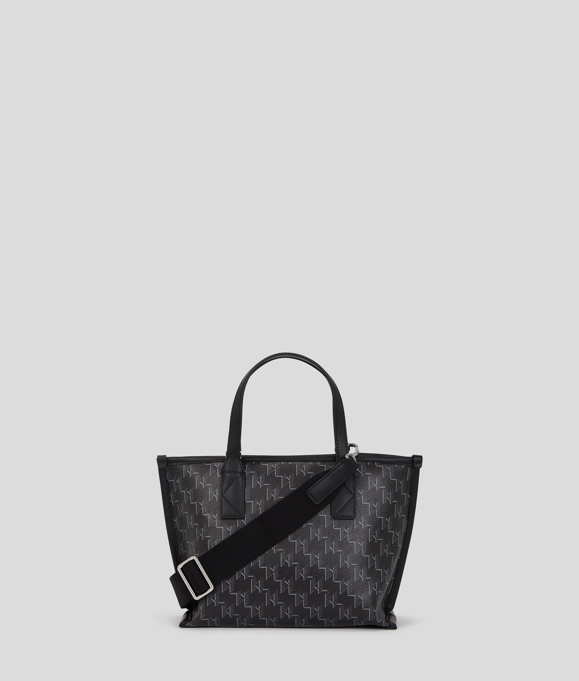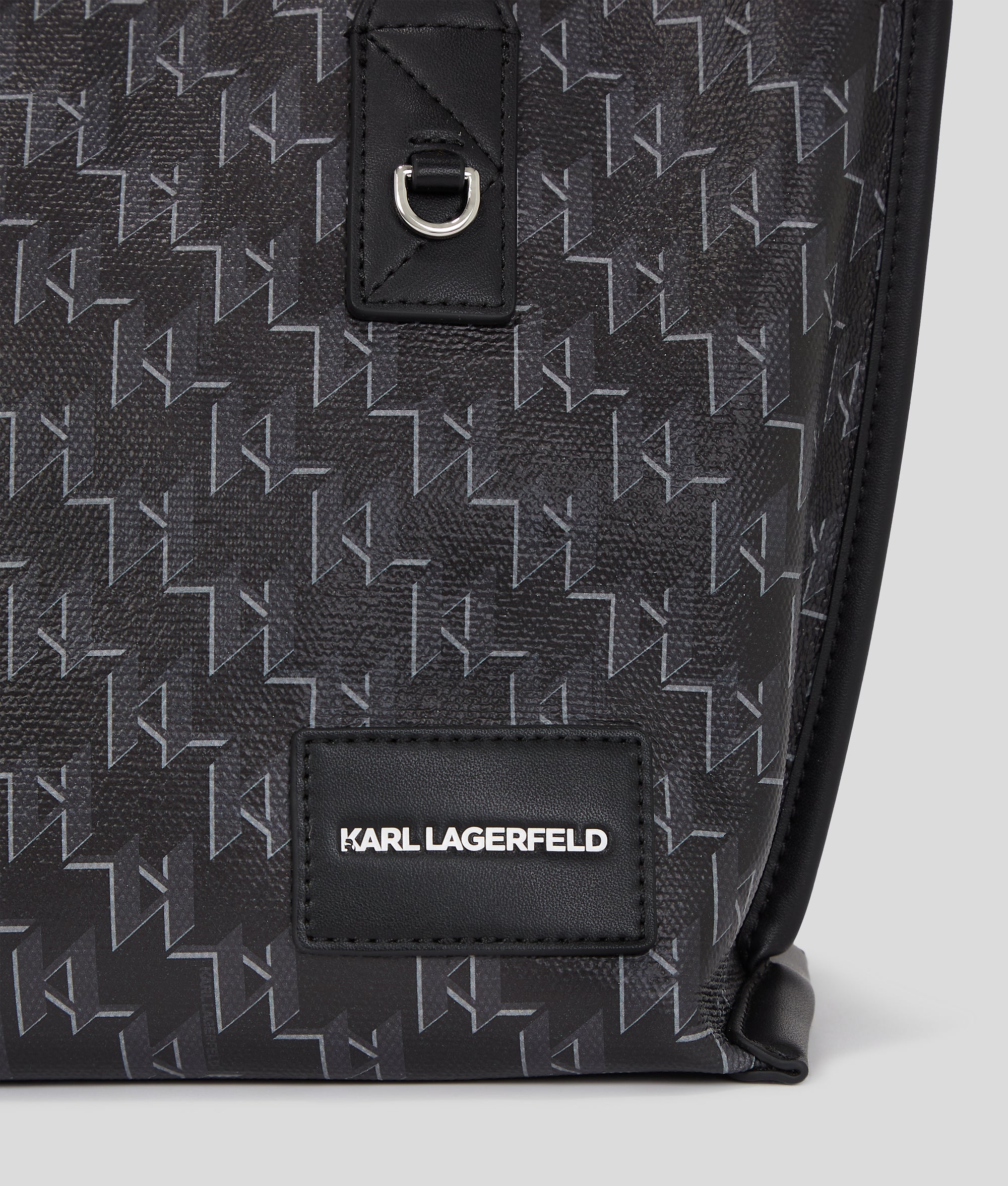 This small tote bag showcases a chic all-over KARL Monogram design. complemented by a zip-top closure and versatile straps for essential practicality.?