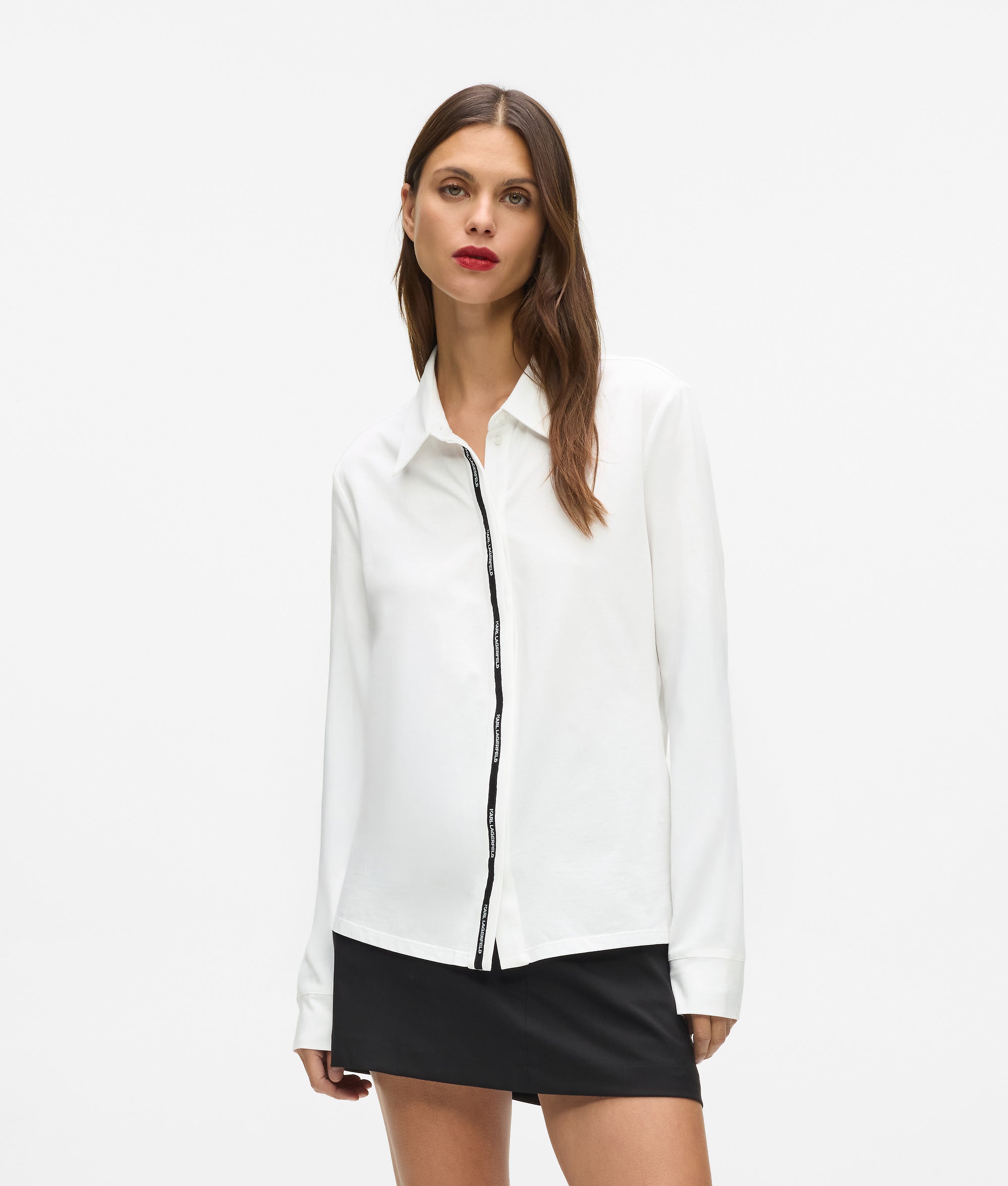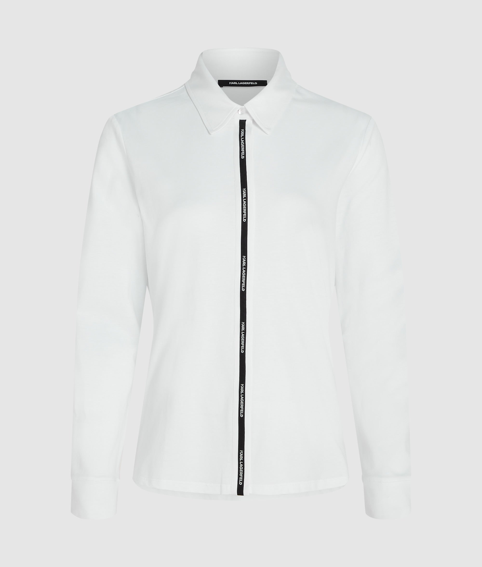 A quintessential Karl Lagerfeld staple reimagined with subtle edge. This classic cotton shirt is detailed with contrasting logo tape running down the front placket.