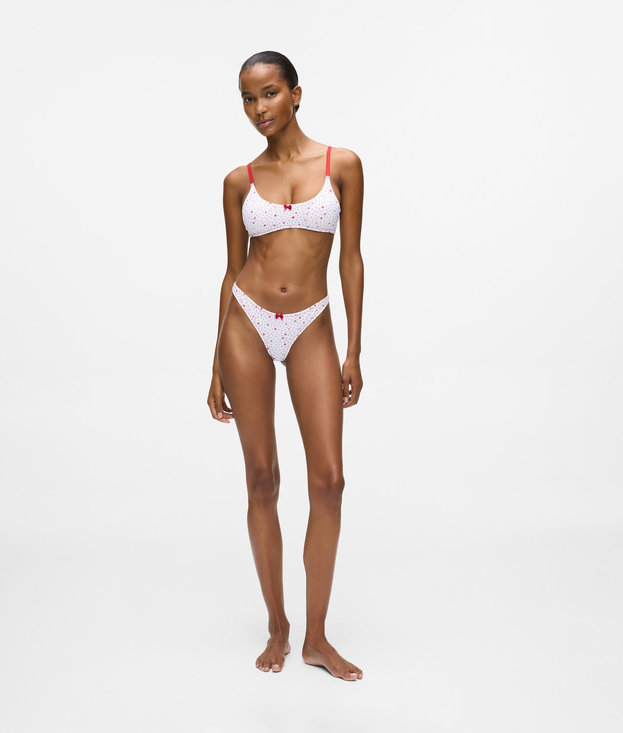 Soft organic cotton shapes this heart print bralette with delicate bows and contrast stitching. Adjustable straps and a hook closure ensure a fit that feels made for you.