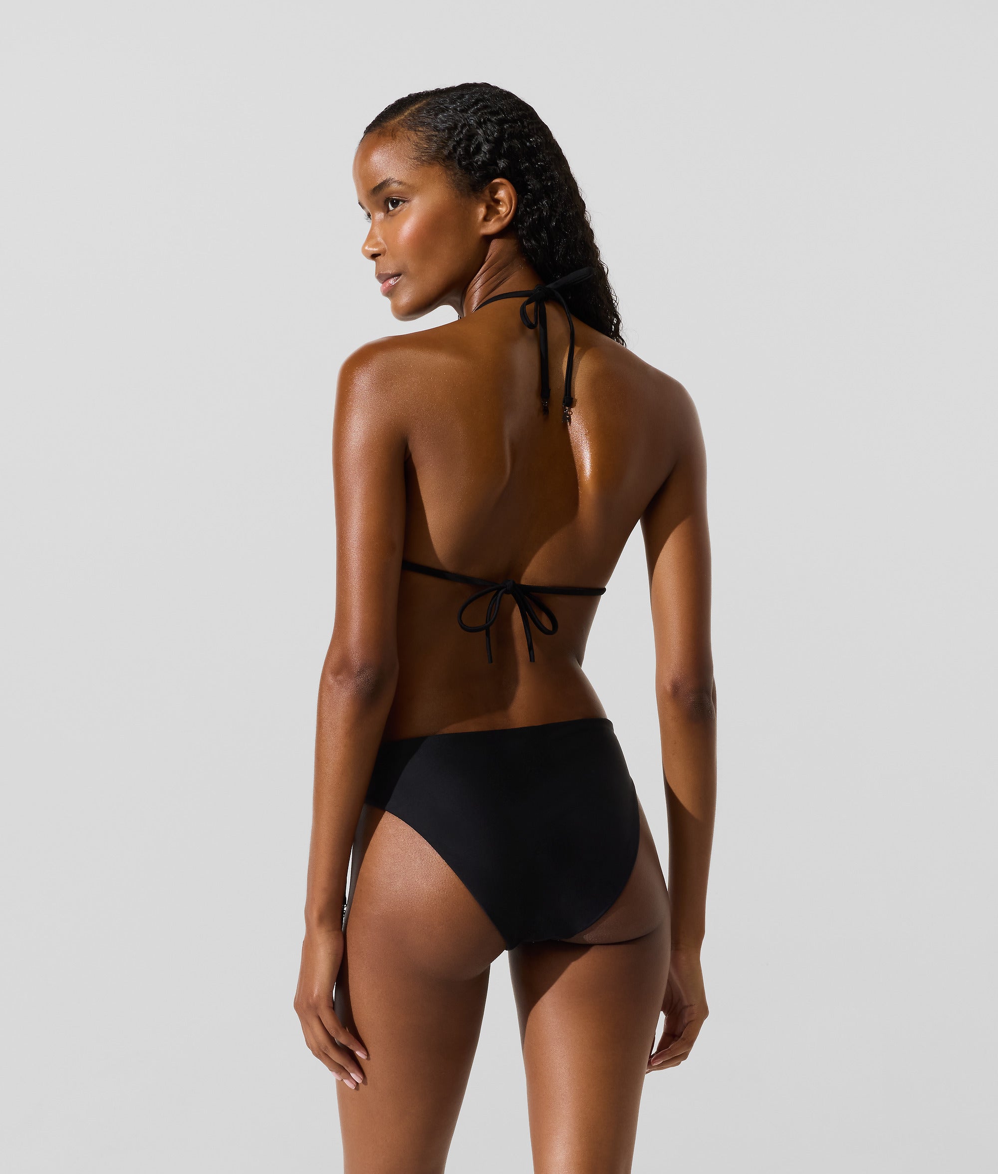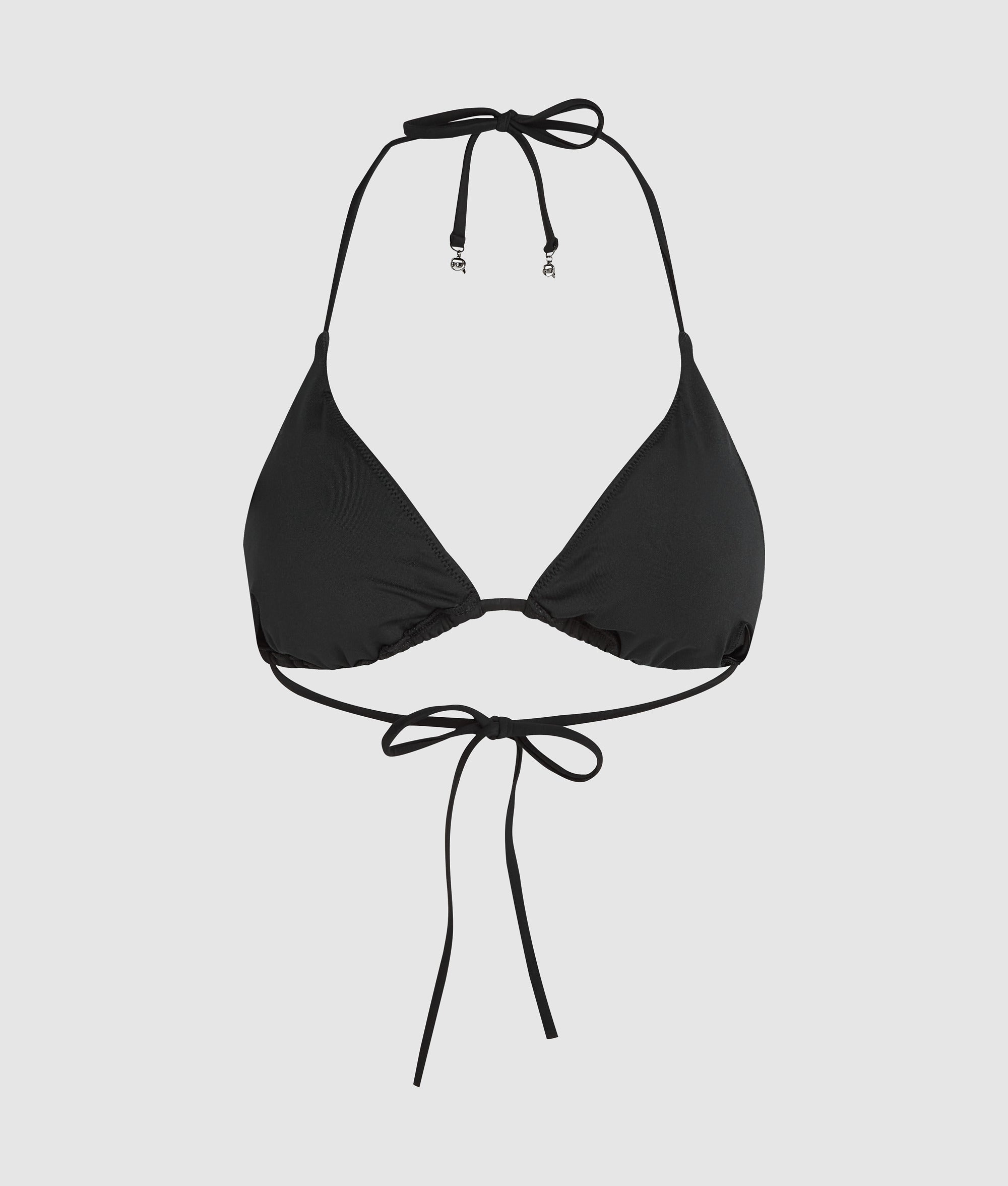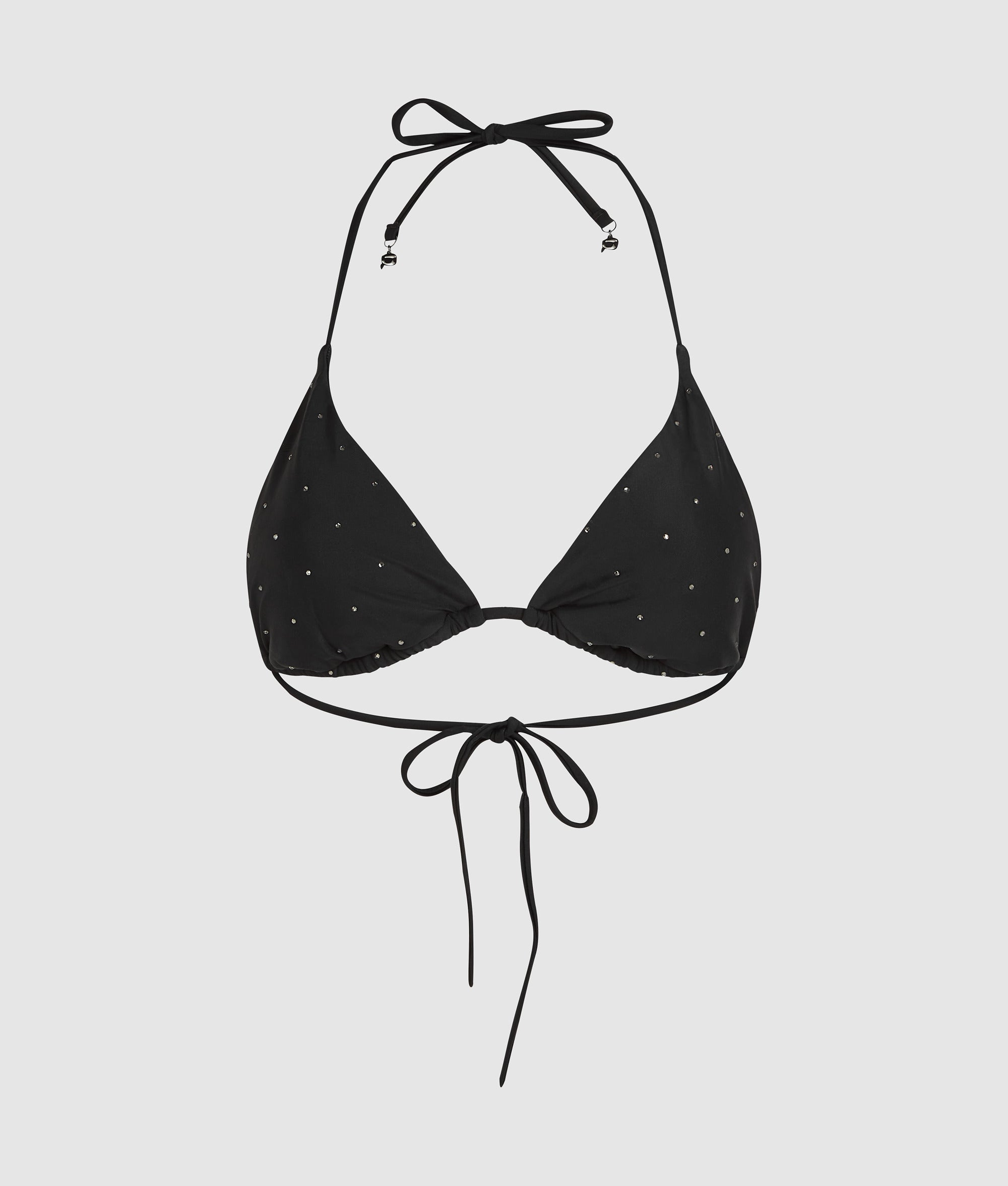 Sparkling rhinestones catch the sunlight on this triangle bikini top. Adjustable ties and removable padding ensure a perfect. personalized fit.