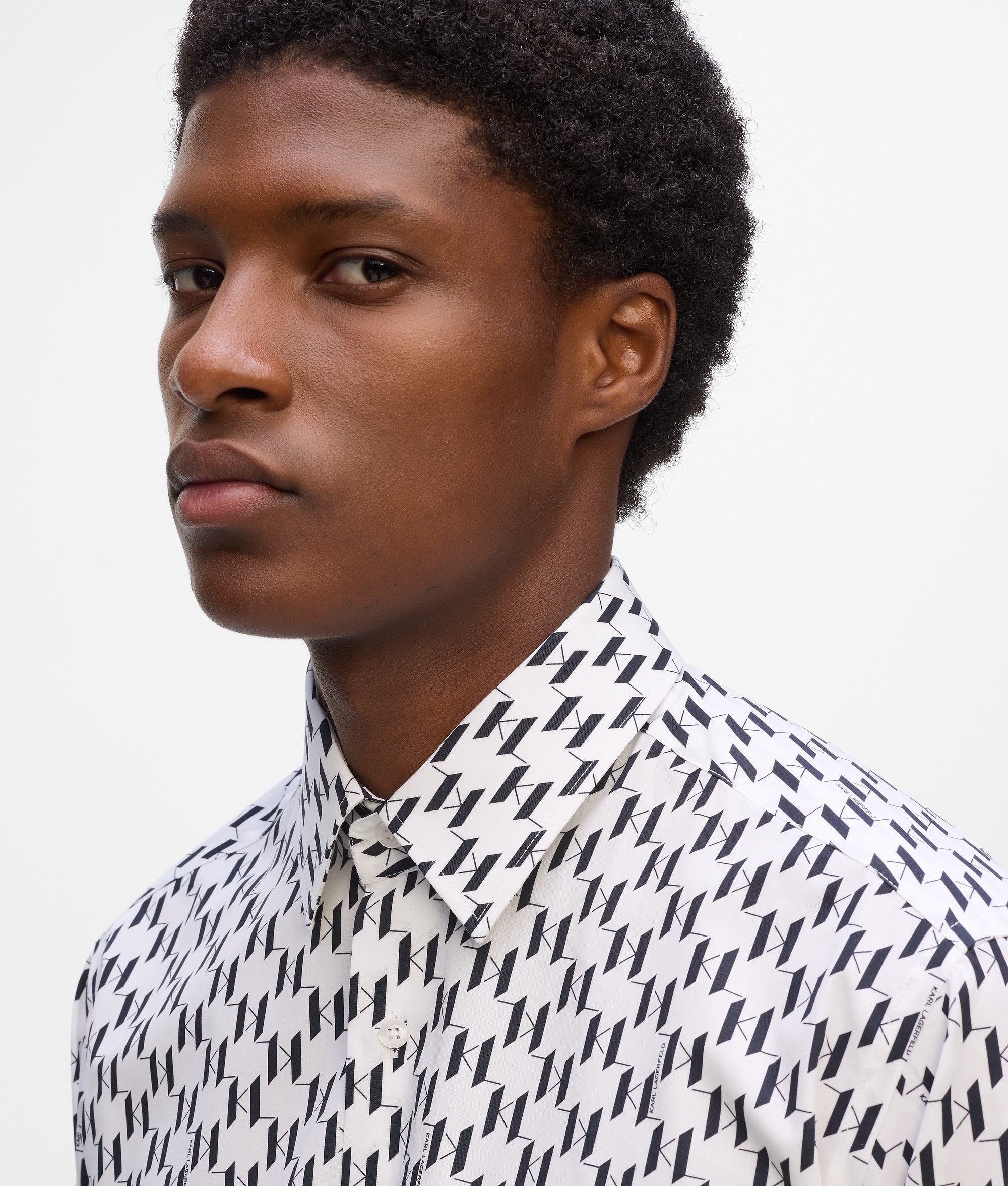 Timeless shirting meets modern detailing. This crisp cotton shirt makes a statement with its all-over Monogram design.