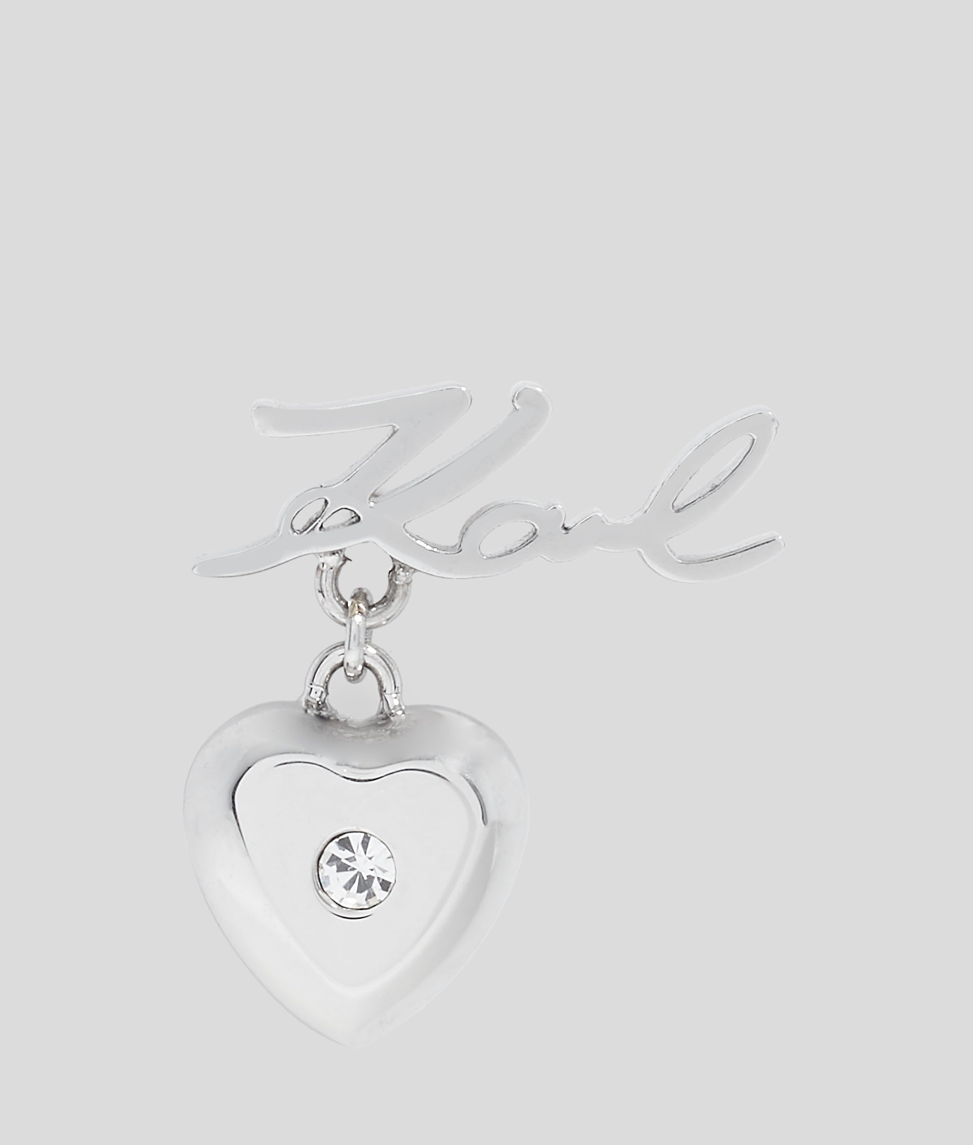 Bring edgy glamour to any look with this single drop earring. featuring KARL Signature and a single crystal-encrusted heart charm.
