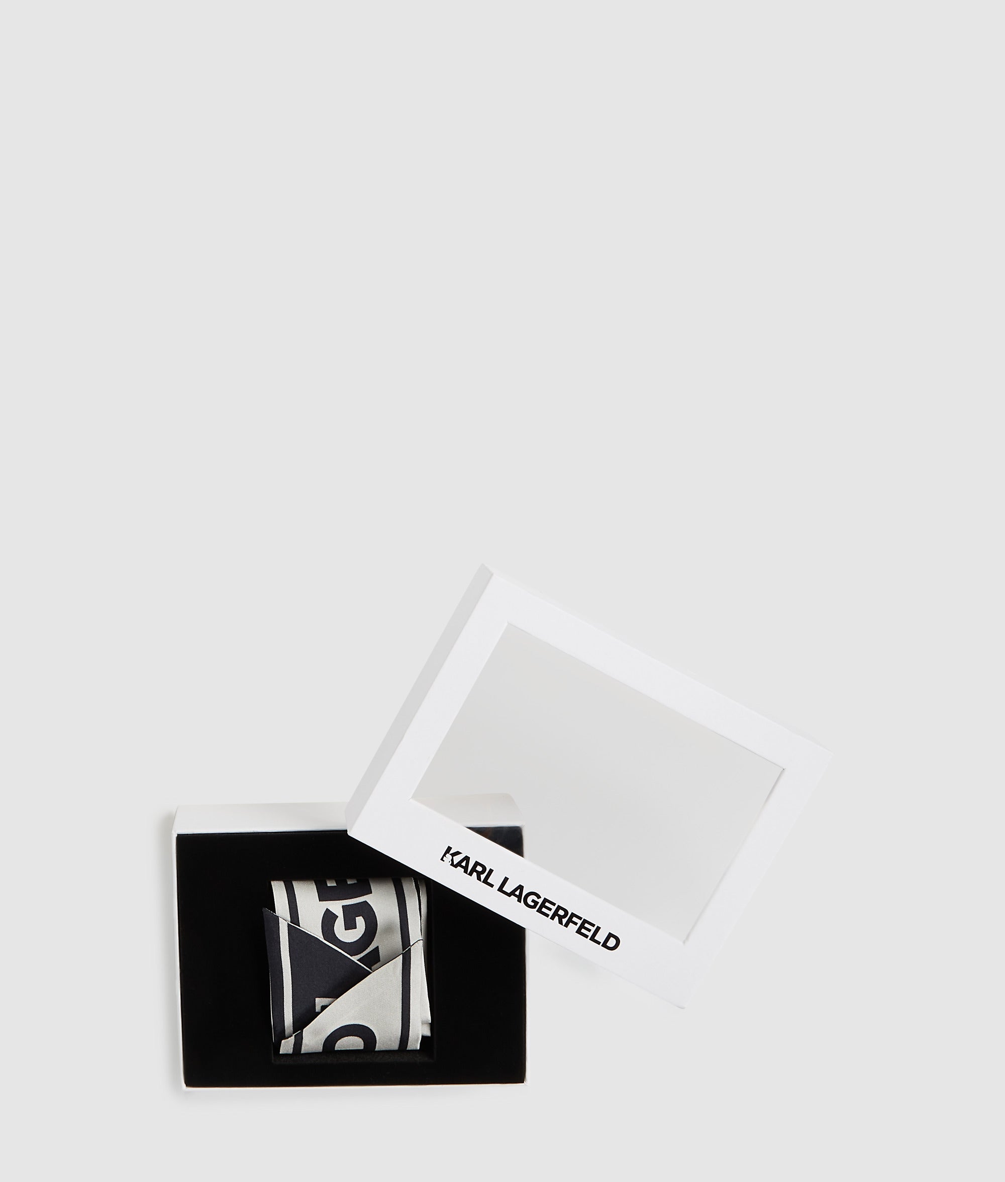 An ultra-slim silk scarf with a reversible design that showcases the iconic KARL LAGERFELD logo. The versatile design offers effortless ways to elevate and personalize any look.